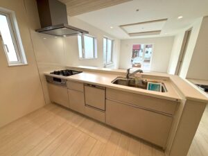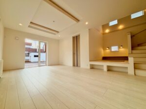 | 設備 | 制震、耐震、日当り良好、照明器具付、吹き抜け、フローリング、シューズボックス、ウォークインクローゼット、全居室収納あり、床下収納、浴室乾燥機、シャワー付洗面化粧台、温水洗浄トイレ、トイレ2ヶ所以上、追い焚き風呂、浴室に窓、浴室暖房、コンロ3口以上、カウンターキッチン、システムキッチン、食器洗乾燥機、エコジョーズ、ガス暖房、24時間換気システム、モニタ付インターホン、都市ガス、整形地、閑静な住宅街 | ||