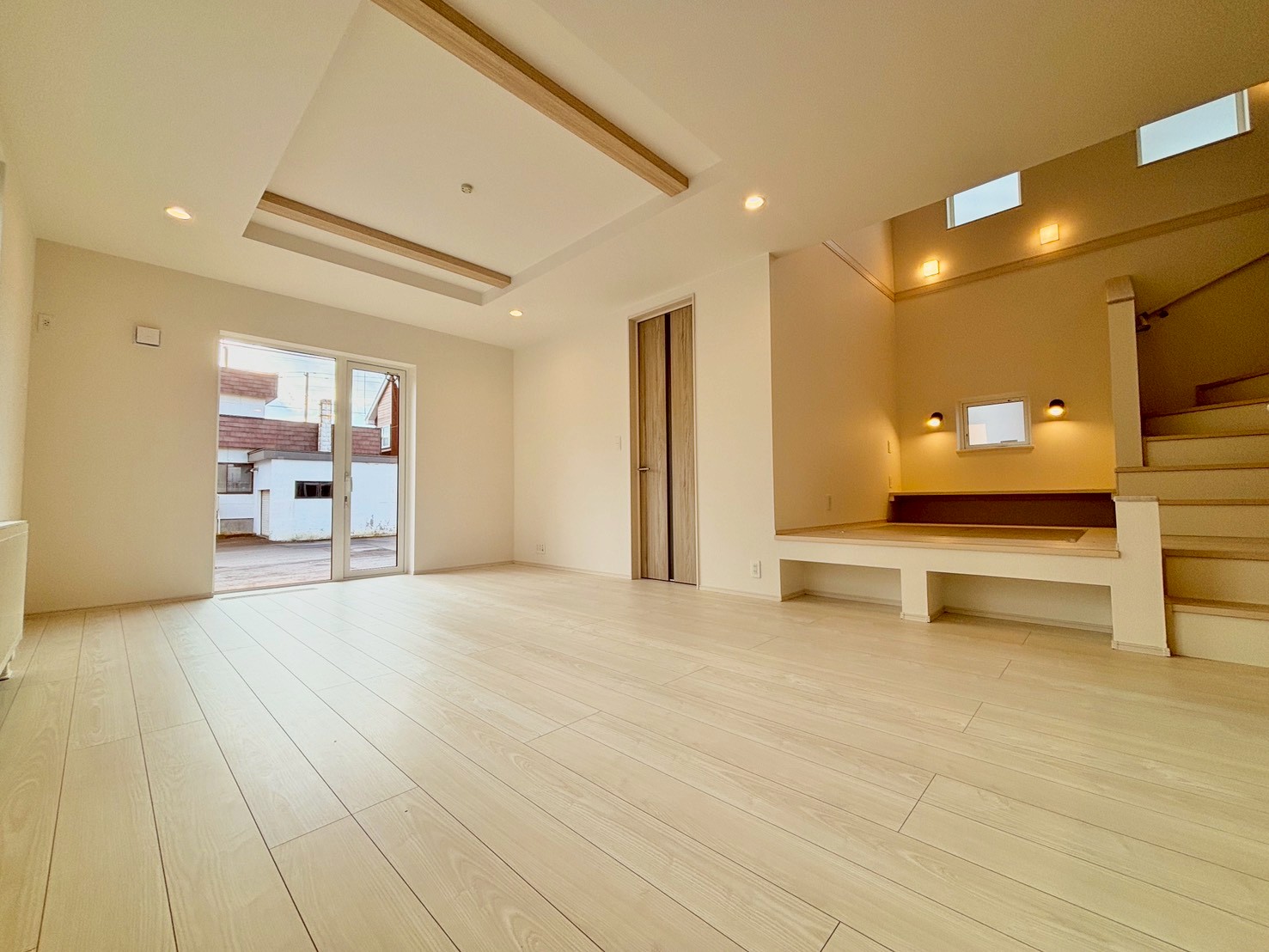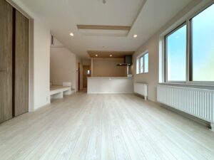 〇開放的なリビングは大きな窓から光が入るほか、吹抜けからの採光も心地よい空間となっております。