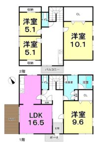 | 間取り(内訳) | DK9.6帖、K6.9帖、洋室9.6帖、洋室10.1帖 洋室5.1帖、洋室5.1帖) | 建物面積 | 137.92㎡ |